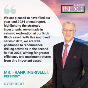 Indonesia Energy Corporation (#NYSE American: #INDO) ("IEC"), an oil and gas exploration and production company focused on Indonesia, announced that it has filed today its annual report on Form 20-F which contains its financial and operating results for the year ended December 31, 2024.